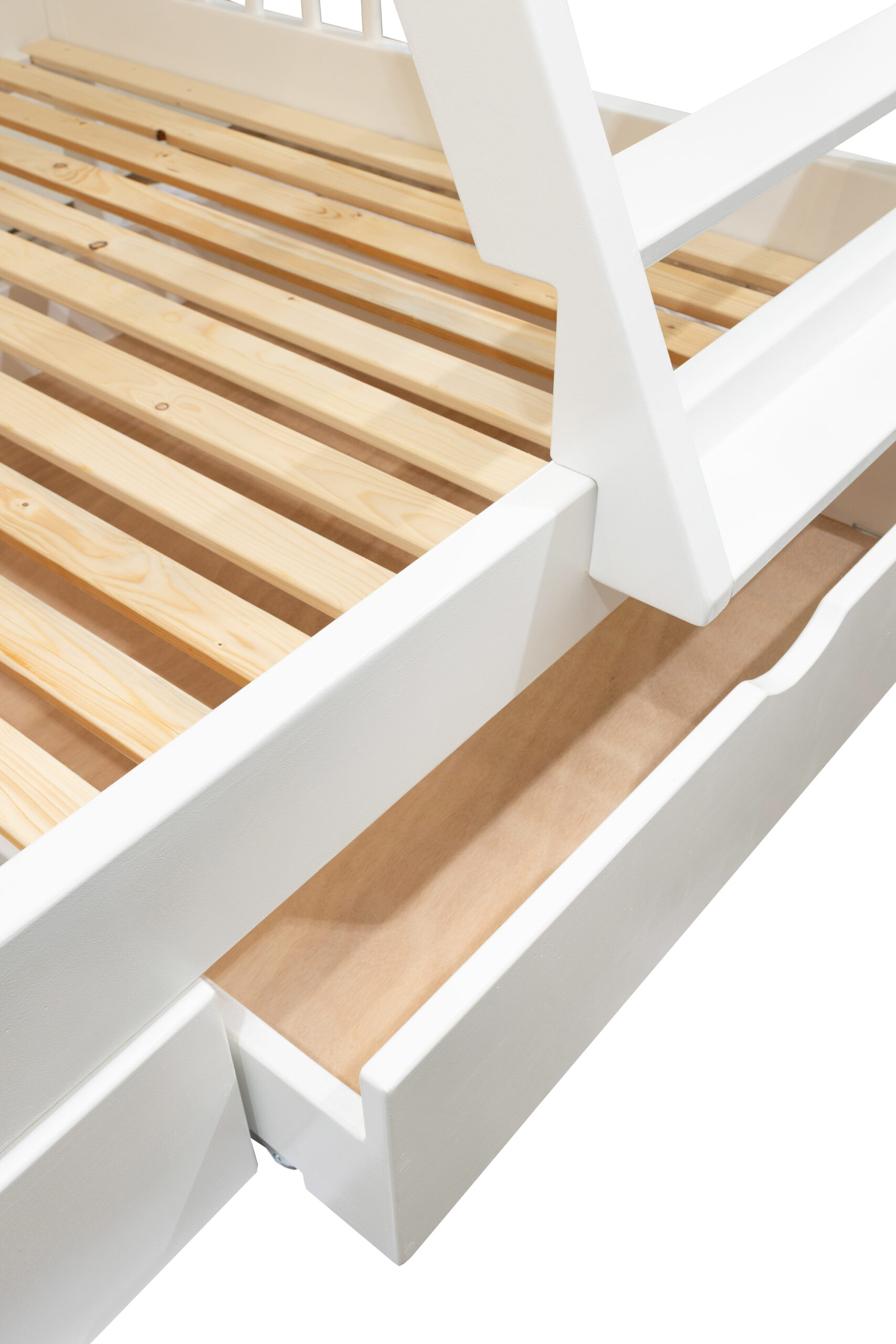 White bunk bed made of solid Slovenian wood.
