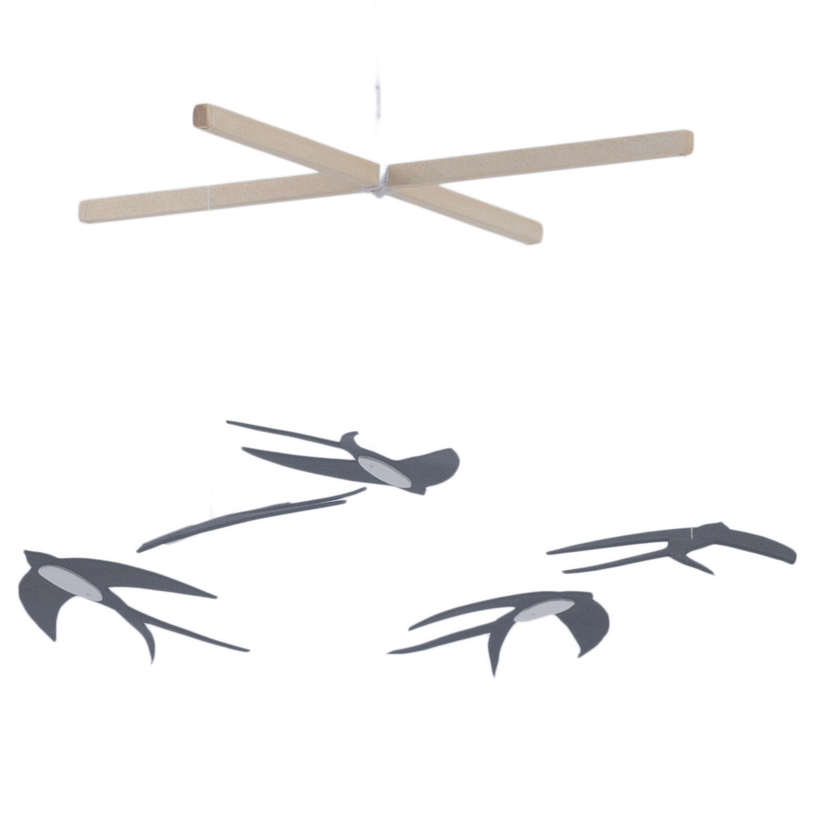 Vrtuljak LASTAVICE nisu klasični Montessori vrtuljak (kao što su Munari, Gobbi, Okraedri), ali ipak slijede principe Montessori pedagogije: izrađeni su minimalistički u crno-bijeloj boji, prikazuju prirodno kretanje – ptice lete.
